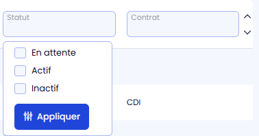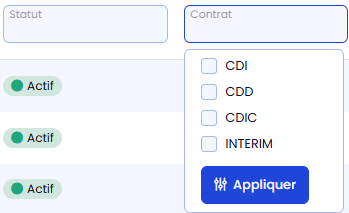 - Inactif signifie qu'une date de fin de contrat a été saisie, et que cette date est dépassée.