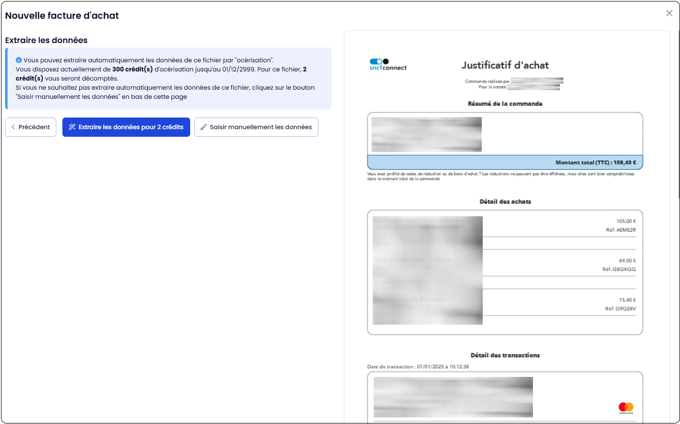 Océriser une facture ou un ticket de caisse