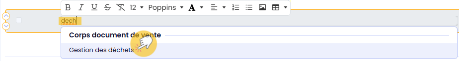 Cette fonction est très utile pour récupérer automatiquement un texte qui revient souvent, comme la gestion des déchets, sans avoir à le ressaisir à chaque devis.