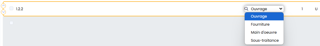 Lorsque vous ajoutez une nouvelle ligne de vente à votre devis, elle est par défaut de type "Ouvrage"