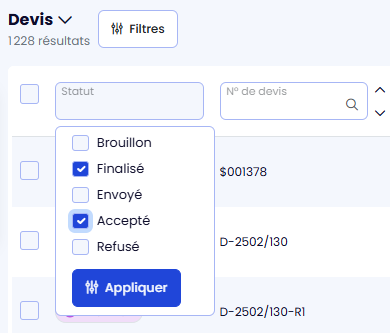- De la même manière, depuis la liste des devis, sans avoir besoin d'ouvrir le devis,